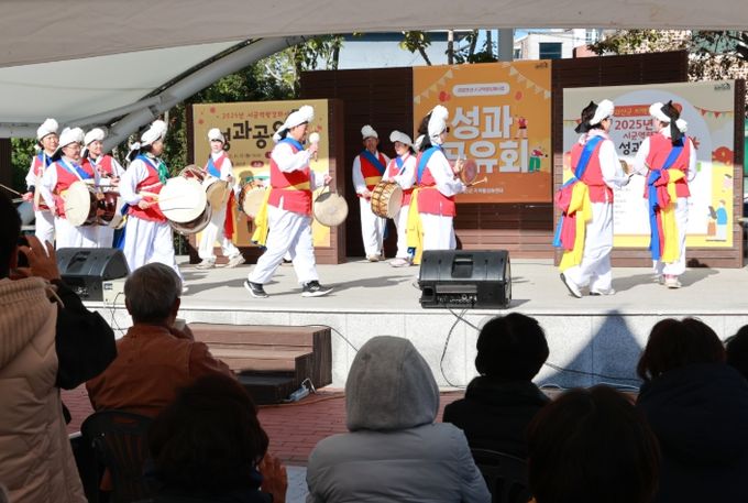성과공유회는 소수 풍물공연을 시작으로 △신이나 벨리댄스 △어머니 숟가락 난타 △전통춤 마실 △연리지 시낭송 △시니어 택견 △샬랄라 라인댄스 △기타랑23 △설우산난타 등 총 9개 동아리의 무대 발표가 진행돼 큰 호응을 얻었다.