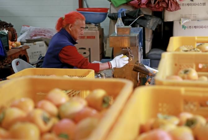 “감 한 알이 입에 들어오기까지 허리, 어깨, 팔이 성한 데가 없어요.” 농민 오성태 씨의 말에 절로 고개가 끄덕여진다.