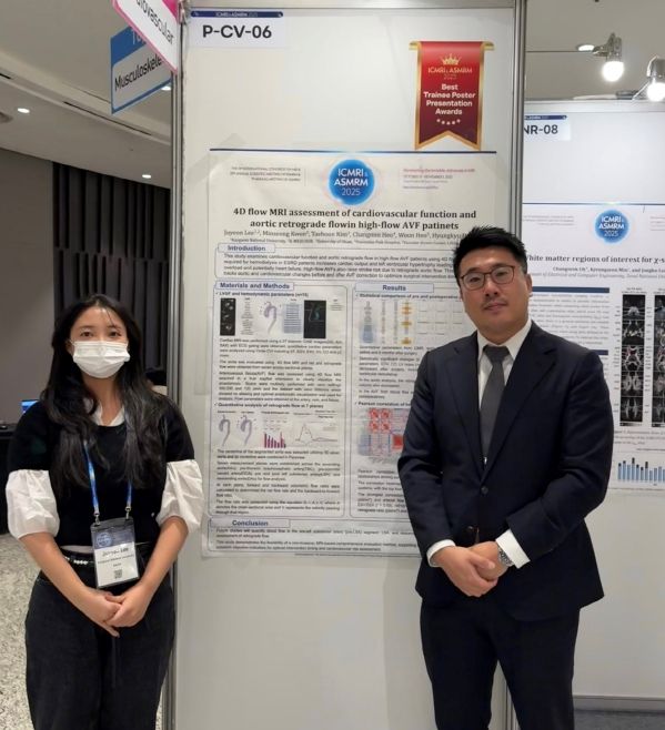 첨단의료기기개발지원센터 허형규 선임연구원과 이주연 파견연구원(강원대학교 석사과정)은 국제자기공명영상학회에서 ‘4D flow MRI를 활용한 고혈류량 동정맥루 환자의 심혈관 기능 및 대동맥 역류 혈류 분석’을 주제로 연구의 우수성을 인정받았다.