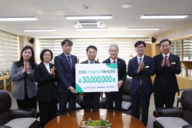 [경남도민뉴스=구인애 기자] 경상남도교육청은 6일 경남교육청 교육감 집무실에서 범한그룹, 초록우산어린이재단 경남지역본부와 함께 ‘가족돌봄아동지원사업’ 후원금 전달식을 개최했다.