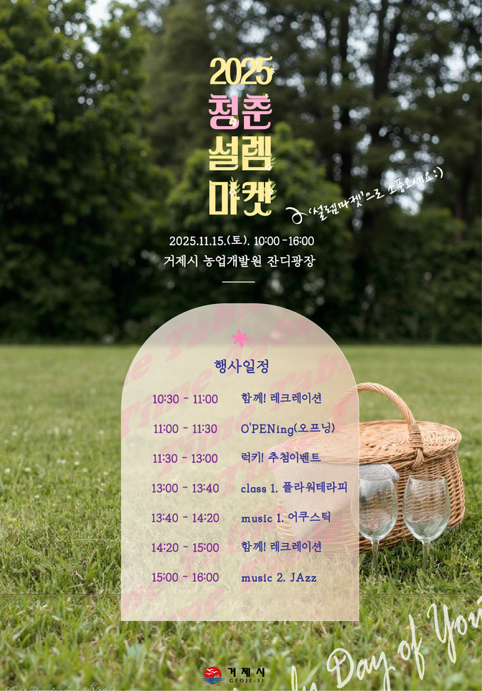 [경남도민뉴스=김부경 기자] 거제시는 오는 11월 15일 토요일, 거제시 농업개발원 내 잔디광장에서 “2025 청춘설렘마켓” 행사를 개최한다.