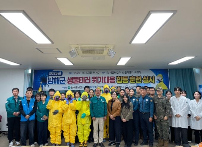 [경남도민뉴스=김부경 기자] 남해군은 지난 7일 남해군보건소 치매안심센터와 남해문화센터 인근 풋살장에서 ‘2025년 생물테러 위기대응 합동 모의훈련’을 실시했다.