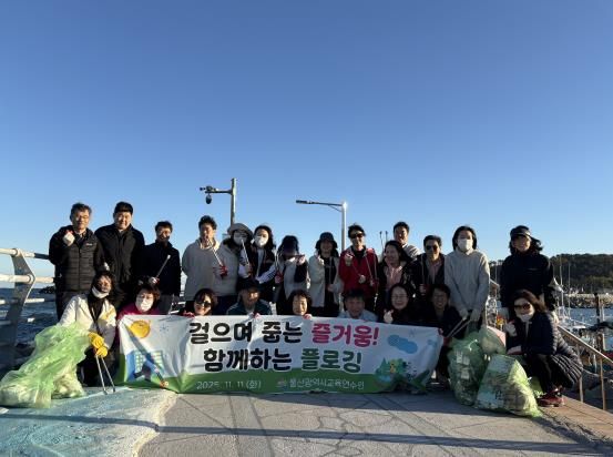 [경남도민뉴스=최재경 기자] 울산교육연수원은 지난 11일 북구 정자동 일대에서 ‘걸으며 줍는 즐거움! 함께하는 쓰담 달리기(플로깅)’를 주제로 환경 정화 활동을 했다.