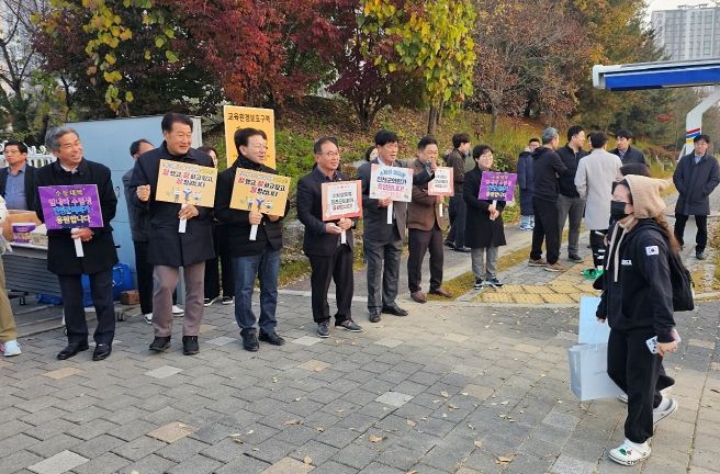 [경남도민뉴스=박만수 기자] 진천군의회 의원 일동은 13일, 2026학년도 대학수학능력시험이 치러지는 진천고등학교와 서전고등학교를 찾아 수험생들의 용기를 북돋웠다.