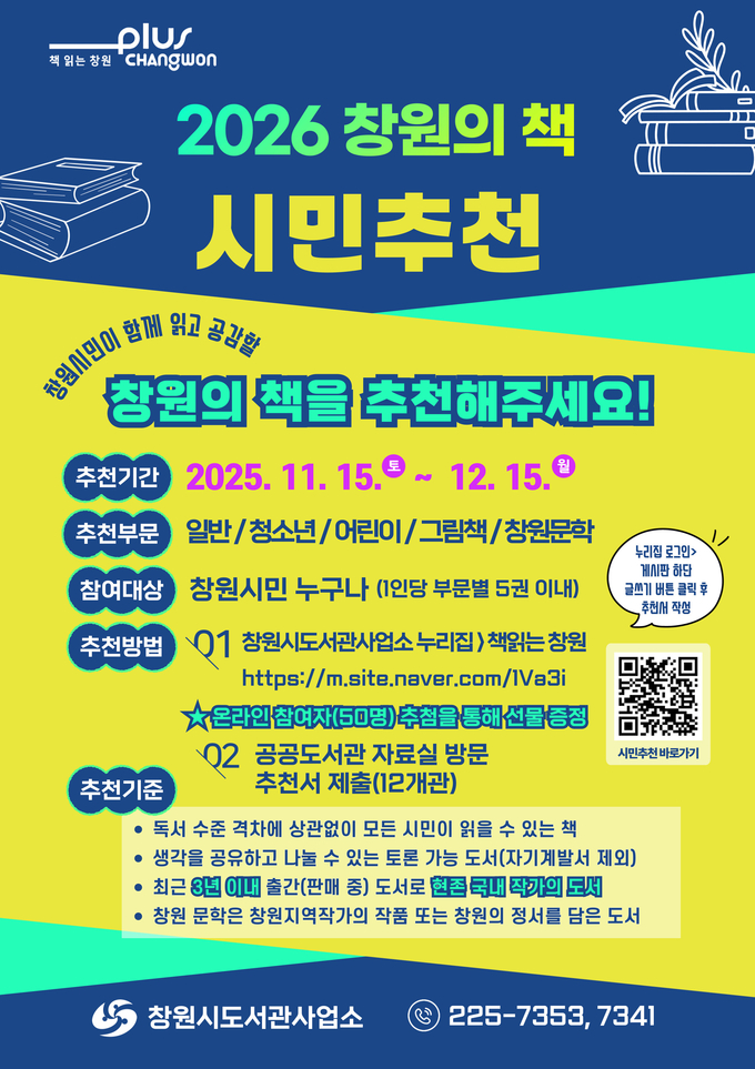 이승룡 도서관사업소장은 “2026년 책 읽는 창원을 시작하는 첫 발걸음으로 ‘2026 창원의 책’ 시민 추천을 진행한다.