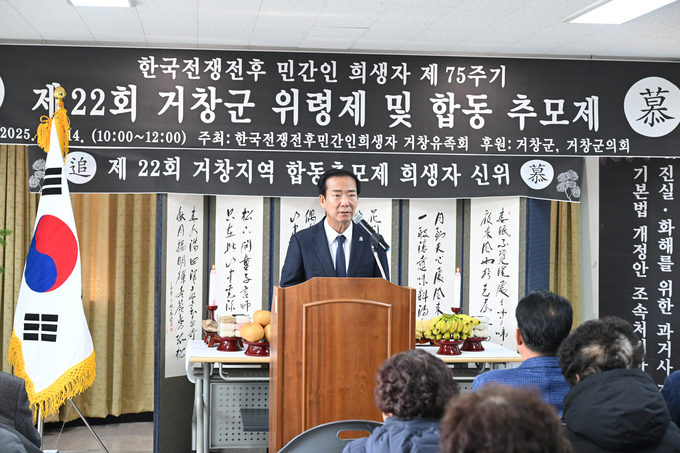 행사에는 구인모 군수, 경상남도의회 박주언 문화복지위원장, 김일수 도의원, 강창남 대한노인회 거창군지회장 등이 자리를 함께해 희생자들에 대한 깊은 애도의 뜻을 표하고 유족들에게 진심 어린 위로의 마음을 전했다.