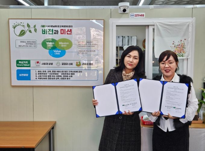 [경남도민뉴스=최미정 기자] (재)김해시복지재단 김해시서부노인종합복지관장은 (사)경남환경교육문화센터(대표 박효원)와 생태, 환경교육 및 다양한 프로그램 개발을 위해 지난 18일 업무협약을 체결했다.