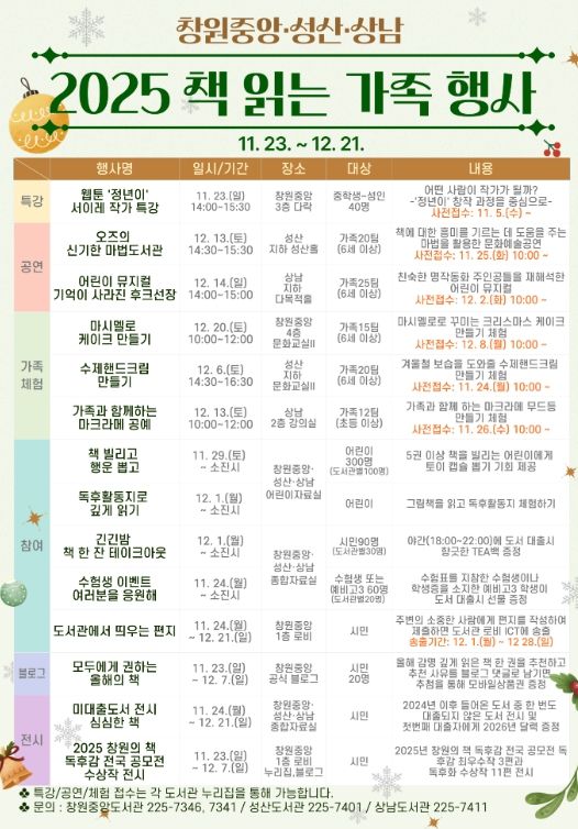 강문선 성산도서관과장은 “2025년 연말을 도서관과 함께 따뜻하고 알차게 보내시길 바라며, 앞으로도 다양한 독서문화행사를 지속적으로 추진하겠다”고 전했다.
