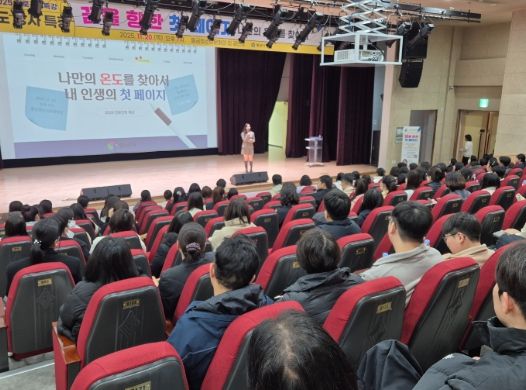 [경남도민뉴스=최미정 기자] 양산시는 지난 20일 이투스 수능강사 이도 강사를 초청해 ‘나만의 온도를 찾아서, 내 인생의 첫 페이지’라는 주제로 ‘2025 진로진학 특강’을 물금청소년문화의집 공연장에서 개최했다.