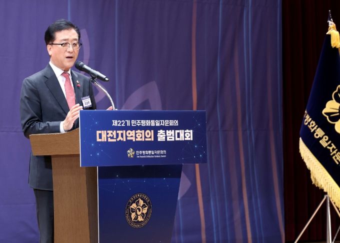 [경남도민뉴스=도문호 기자] 대전시의회 조원휘 의장은 21일 대전시청에서 개최된 제22기 민주평화통일자문회의 대전지역회의 출범식에 참석해 축하의 인사를 전하며, 대한민국의 온전한 평화와 번영을 위해 힘써주실 것을 당부했다.