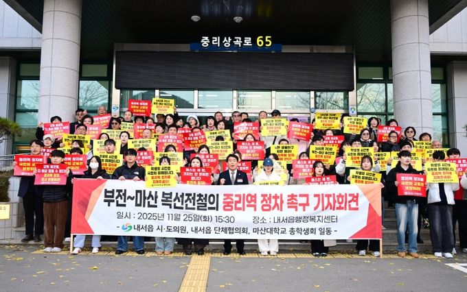 이날 기자회견에서는 ①국토교통부와 국가철도공단은 중리역을 부전~마산 복선전철 ITX-마음 열차의 공식 정차역으로 지정할 것, ②경상남도는 책임 있는 자세로 중앙정부와 적극 협의해 지역 주민의 교통권을 실질적으로 보장할 것을 강력히 촉구했다.