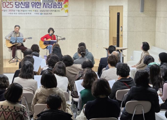 [경남도민뉴스=박민호 기자] 창원특례시 상남도서관(과장 강문선)은 26일 오후 7시 상남도서관 다목적홀에서 개최한 ‘당신을 위한 시낭송회’를 성황리에 마무리했다.