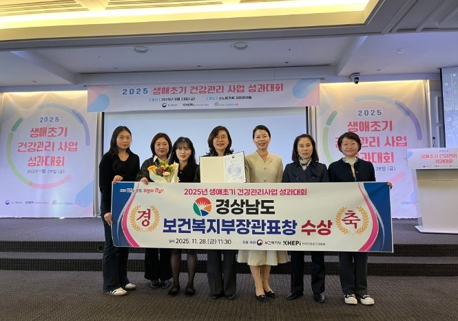 [경남도민뉴스=구인애 기자] 경상남도는 11월 28일 개최된 ‘2025년 생애초기 건강관리사업 성과대회’에서 전국 시도 중 유일하게 보건복지부 장관상을 수상했다고 밝혔다.