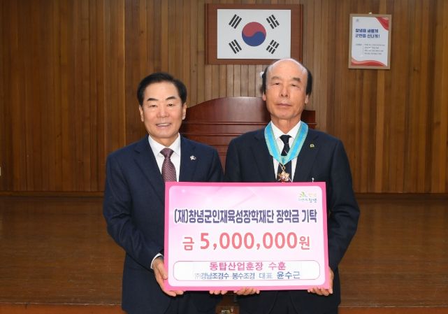 [경남도민뉴스=김병현 기자] ㈜경남조경수 윤수근 대표가 지난 1일 (재)창녕군인재육성장학재단에 장학금 500만 원을 기탁했다고 밝혔다.