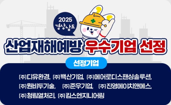[경남도민뉴스=구인애 기자] 경상남도는 2025년 경상남도 산업재해 예방 우수기업에 최종 8개 사를 선정했다고 2일 밝혔다.