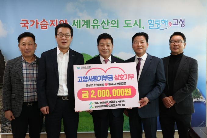 [경남도민뉴스=김태수 기자] 고성군은 12월 2일, 고성군 산림조합과 통영시 산림조합(조합장 차형재)이 고향사랑기부제 취지에 동참하기 위해 각각 200만 원을 상호기부했다고 밝혔다.