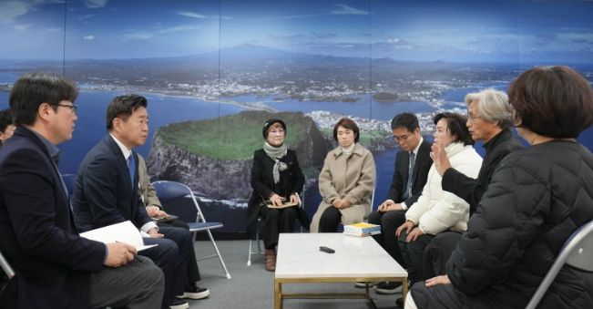 [경남도민뉴스=하형수 기자] 제주특별자치도는 제주평화인권헌장 제정과 관련해 2일(화) 도청 소통회의실에서 제주도민연대(대표 이향) 등 단체와 면담을 가졌다.