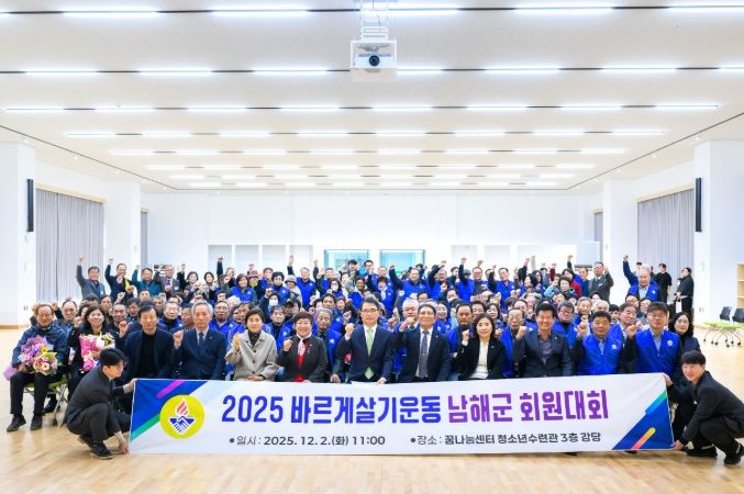[경남도민뉴스=김부경 기자] 바르게살기운동남해군협의회(회장 권대석)는 지난 2일 꿈나눔센터 청소년수련관 3층 강당에서 2025년 바르게살기운동 남해군회원대회를 개최했다.
