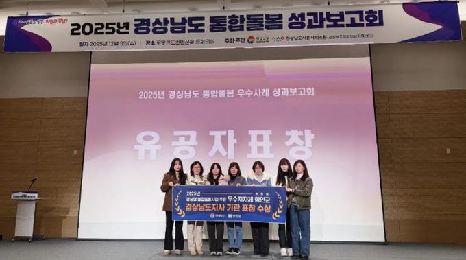 [경남도민뉴스=권중환 기자] 함안군은 지난 3일 창원 로봇랜드 컨벤션센터에서 열린 경상남도 통합돌봄 성과보고회에서 2025년 한 해 동안 경남형 통합돌봄사업을 모범적으로 추진한 공로를 인정받아 ‘경남형 통합돌봄 운영 분야’ 경상남도지사 기관표창을 받았다고 밝혔다.
