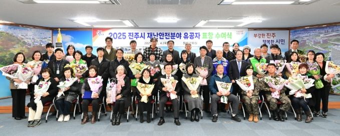 [경남도민뉴스=권중환 기자] 진주시는 4일 시청 문화강좌실에서 ‘2025년 재난안전분야 유공자 표창 수여식’을 열고, 지역사회 안전을 위해 헌신한 유공자 88명에게 표창을 수여했다고 밝혔다.