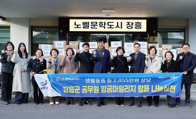 [경남도민뉴스=최인태 기자] 장흥군 공무원 122명이 공적 항공마일리지를 활용해 마련한 20,558,250원 상당의 생필품 197점을 지역 취약계층에 전달했다.