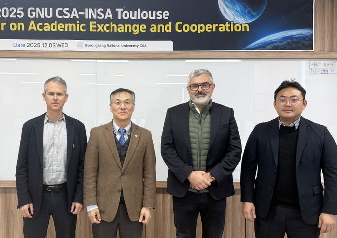 [경남도민뉴스=구인애 기자] 경상국립대학교 우주항공대학은 12월 3일 가좌캠퍼스 항공우주산학협력관에서 프랑스 국립응용과학원(INSA Toulouse, 인사툴루즈)와 ‘우주항공 연구교류회 및 특강’을 개최했다.