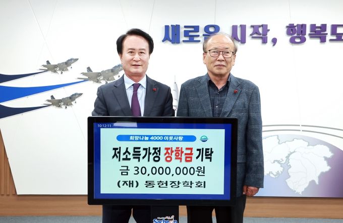 [경남도민뉴스=변정형 기자] (재)동헌장학회가 지난 12월 5일 사천시 관내 저소득가정의 중·고·대학생 30명을 위해 총 3,000만 원의 장학금을 기탁했다.