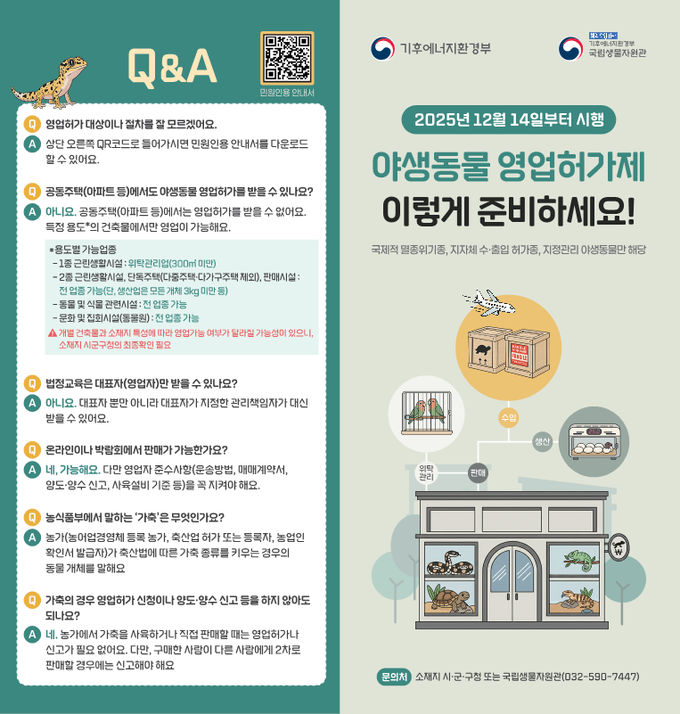 [경남도민뉴스=구인애 기자] 경상남도는 '25년 12월 14일부터 야생동물 보호 및 관리에 관한 법률 개정에 따라 '야생동물 관련 영업 허가제 및 신고제'를 시행한다고 밝혔다.