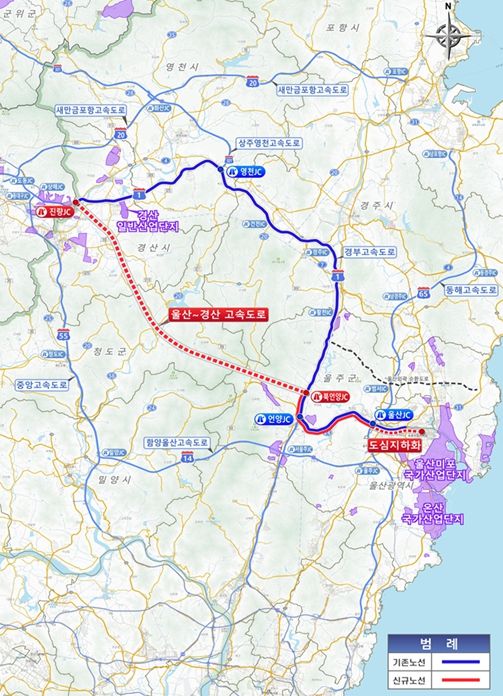 ‘울산~경산 고속도로’는 울산 울주군 언양읍에서 경산시 진량읍을 잇는 총연장 50㎞, 4차로 규모로 계획돼 있다.
