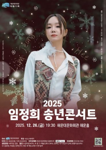 [경남도민뉴스=신석주 기자] 해운대문화회관은 오는 12월 26일 오후 7시 30분, 해운대문화회관 해운홀에서 송년 특별기획 공연인 ‘2025 임정희 송년콘서트’를 개최한다.