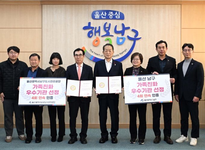 [경남도민뉴스=최재경 기자] 울산 남구는 성평등가족부가 주관하는 ‘2025년 가족친화 인증’ 재인증 기관으로 선정돼 4회 연속 가족친화 인증을 획득했다고 19일 밝혔다.