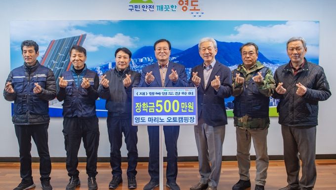 [경남도민뉴스=김채연 기자] 영도 마리노 오토캠핑장(기간제근로자 일동)은 지난 12월 19일 영도구청을 방문하여 우수한 지역인재 양성을 위해 (재)행복영도장학회에 500만 원을 기탁했다.