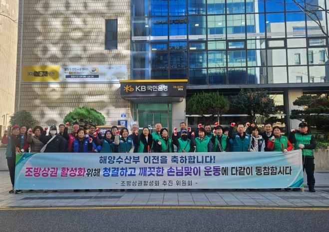 [경남도민뉴스=신석주 기자] 부산 동구 범일2동은 지난 12월 18일 해양수산부 임시청사 개청을 앞두고 조방상권 활성화를 위한 손님맞이 도시환경정비를 실시했다.