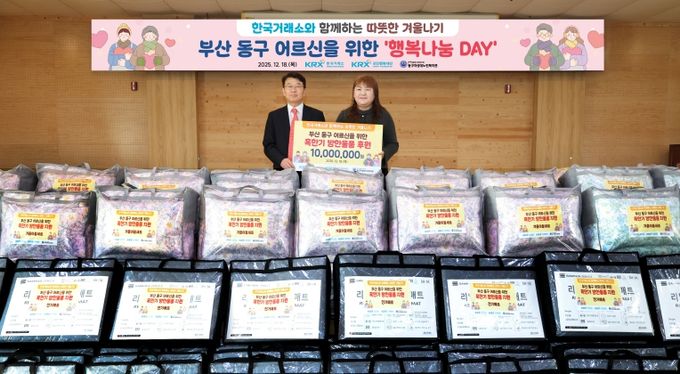 [경남도민뉴스=신석주 기자] 2025년 12월 18일, KRX국민행복재단(이사장 정은보)은 동구지역 어르신들의 따뜻한 겨울나기를 응원하며 동구자성대노인복지관(관장 이은숙)에 후원금 1,000만원을 기탁했다.