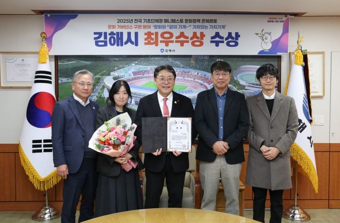 [경남도민뉴스=최미정 기자] 김해시는 지난 23일'2025년 전국 기초단체장 매니페스토 문화정책 콘체르토 대회'에서 문화거버넌스 구현 분야‘최우수상’을 수상했다고 밝혔다.