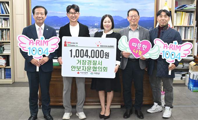 또한 아림1004운동에 참여한 이수미팜베리(대표 이수미)는 교육농장과 레스토랑 운영을 통해 거창 농업의 우수성을 알리고 있는 지역 대표 업체로서, 성금 3,000천원을 기탁하며 지역 상생의 의미를 더했다. 이어 거창경찰서 안보자문협의회(회장 신춘규)는 평소 경찰 활동 지원과 지역 안보를 위해 힘쓰는 한편, 이번 기탁식에 1,004천원을 전달하며 지역사회 안전망 구축뿐만 아니라 나눔 문화 확산에도 앞장섰다.