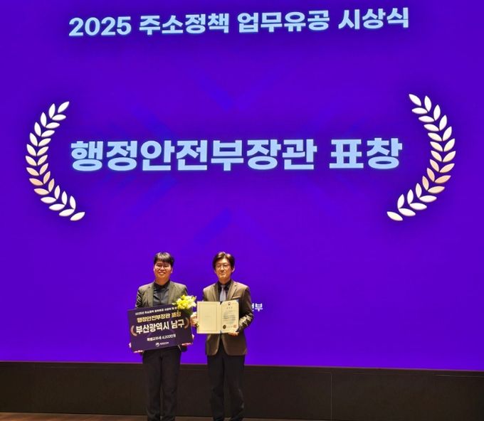 [경남도민뉴스=신석주 기자] 부산광역시 남구는 행정안전부가 주관한 ‘2025년 주소정책 업무 유공’ 분야에서 우수 기관으로 선정돼 행정안전부 장관 표창을 수상하고, 특별교부세 4천만 원을 확보했다고 밝혔다.