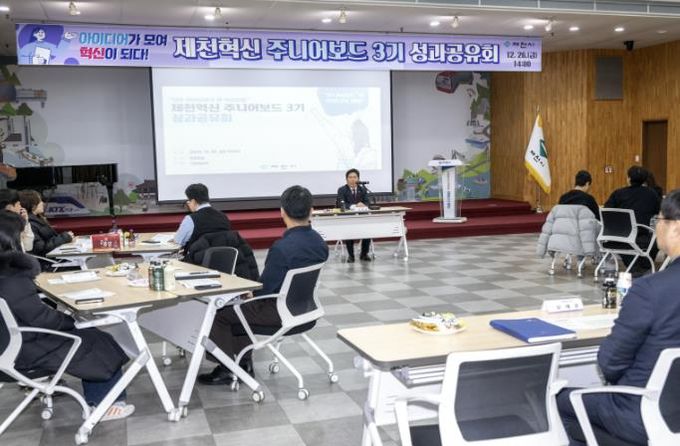 [경남도민뉴스=박만수 기자] 제천시는 지난 26일 ‘제천혁신 주니어보드 성과공유회’를 개최하고, 주니어보드 3기가 지난 1년간 발굴한 혁신 아이디어를 발표하고 공유하는 뜻깊은 시간을 가졌다.
