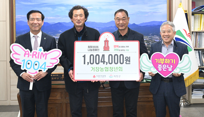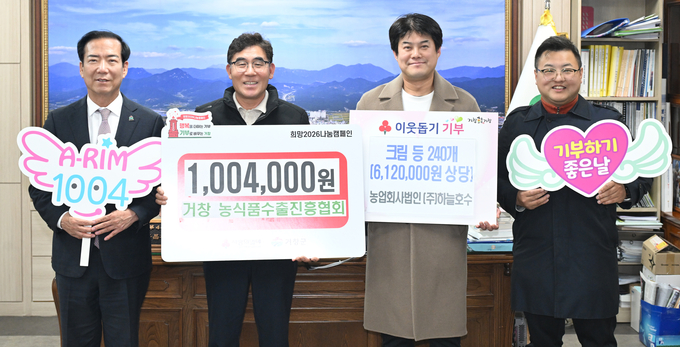 [경남도민뉴스=백형찬 기자] 거창군은 지난 30일 군청 군수실에서 지역 사회를 든든히 지탱하는 향토 기업과 단체들로부터 어려운 이웃을 위한 ‘아림1004운동’ 성금과 이웃돕기 물품을 전달받으며, 연말연시 나눔의 가치를 공유하는 기탁식을 가졌다.