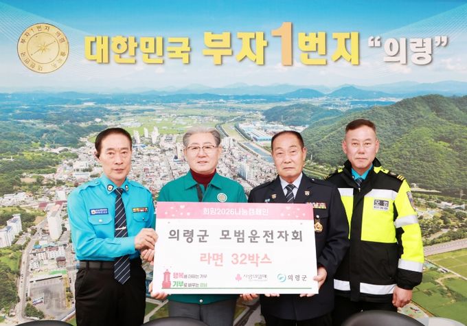 [경남도민뉴스=이상민 기자] 의령군은 지난 30일, 연말 이웃돕기를 위해 의령군 모범운전자회가 라면 32박스(100만 원 상당)를 기탁했다고 밝혔다.