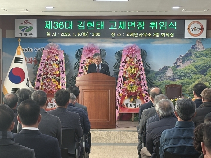 [경남도민뉴스=백형찬 기자] 거창군 고제면은 지난 6일 행정복지센터에서 이장, 기관단체장, 공무원 등 50여 명이 참석한 가운데 제36대 김현태 면장의 취임식을 개최하고 병오년 새해를 맞아 새로운 출발을 알렸다.
