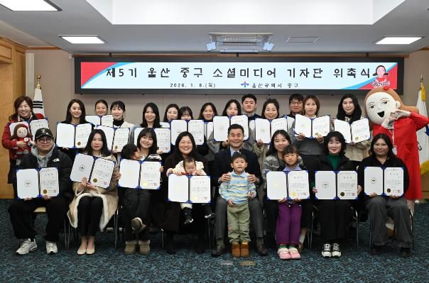 [경남도민뉴스=최재경 기자] 울산 중구가 제5기 중구 소셜미디어 기자단을 새롭게 구성하고 지난 1월 8일 오후 6시 30분 중구청 중회의실에서 위촉식을 열었다.