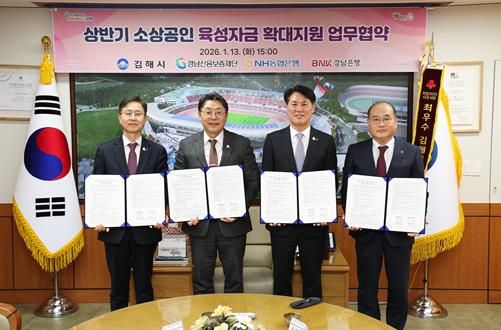 [경남도민뉴스=최미정 기자] 김해시는 13일 김해시청에서 NH농협은행, BNK경남은행, 경남신용보증재단과 ‘2026년 상반기 소상공인 지원 업무협약(MOU)’을 체결했다.