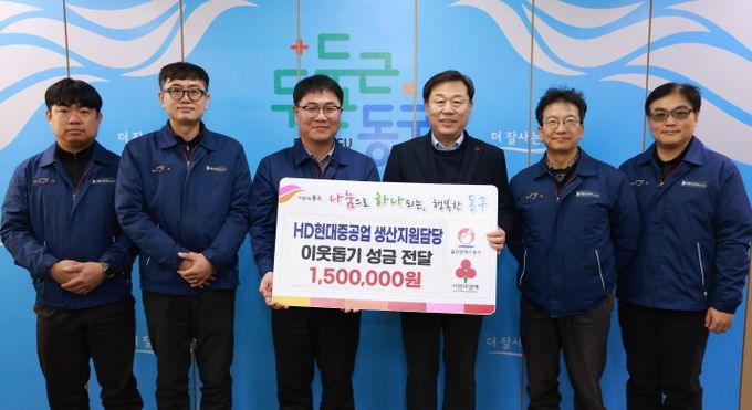 [경남도민뉴스=최재경 기자] HD현대중공업 생산지원담당(부서장 박필용 수석)은 1월 16일 오전 10시 동구청을 방문해 이웃돕기 성금 150만 원을 전달했다.