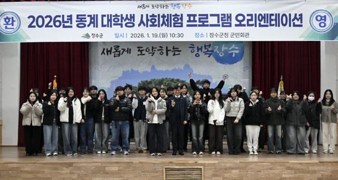 [경남도민뉴스=최인태 기자] 장수군은 19일 군청 군민회관에서 2026년 동계 대학생 사회체험 프로그램 ‘오리엔테이션’을 진행하고 3주 간의 행정체험 프로그램을 공식 시작했다고 밝혔다.