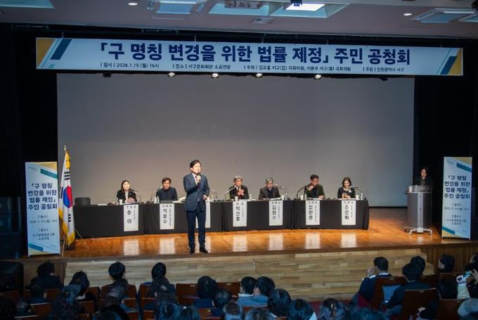 [경남도민뉴스=김용욱 기자] 인천 서구는 지난 19일 서구문화회관 소공연장에서 지역주민 약 200여 명이 참석한 가운데 ‘구 명칭 변경을 위한 법률 제정 주민 공청회’를 개최하고 주민 의견을 수렴했다.