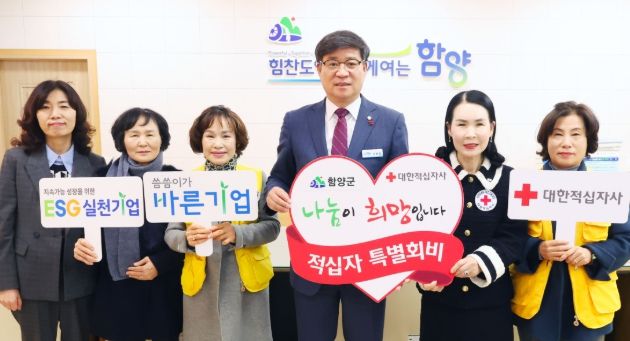 이번 적십자 특별회비 전달식에는 진병영 함양군수, 박희순 대한적십자사 경남지사 회장, 이영미 대한적십자사봉사회 함양군협의회장 등 관계자들이 참석했다.