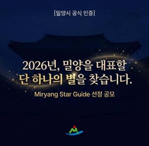 [경남도민뉴스=나희준 기자] 밀양시는 관광객이 신뢰하고 선택할 수 있는 지역 대표 관광 기준을 마련하기 위해 ‘2026년 밀양 관광의 별(Miryang Star Guide)’을 공개 모집한다고 21일 밝혔다.