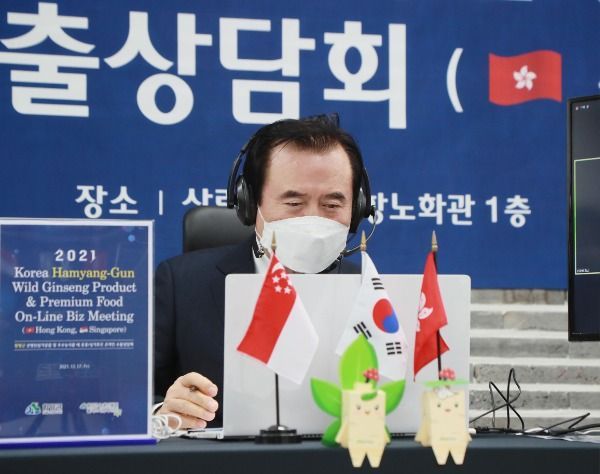 이 자리에는 행사를 주최하는 함양군 농촌신활력플러스사업 추진단과 관내 산양삼 가공품 및 농식품 10개 업체가 홍콩과 싱가포르 지역 바이어와의 온라인 수출 상담을 위해 참석하였다.