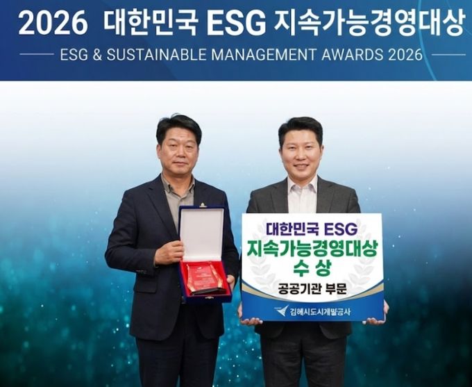 [경남도민뉴스=최미정 기자] 김해시도시개발공사가 지난 4일 일산 킨텍스에서 열린 ‘2026 대한민국 ESG 지속가능경영대상’ 시상식에서 공공기관 부문 ‘대상’을 수상했다.